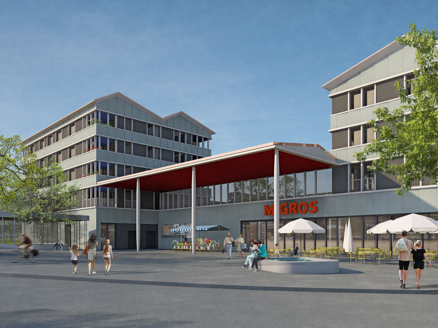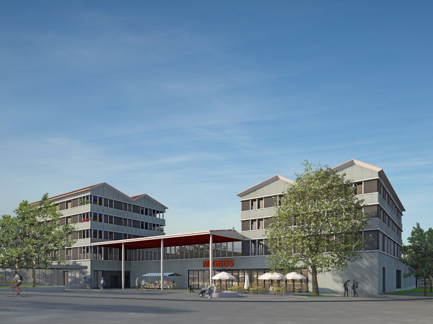 BeschreibungDer heute bestehende Standort der Genossenschaft Migros Ostschweiz (GMOS) in Appenzell lässt zu Expansionszwecken nicht ausreichend Möglichkeiten zu. Deshalb hat die GMOS beschlossen, im Gebiet „Sandgrube“ zusammen mit dem Grundeigentümer (Famin AG) einen Neubau zu errichten. In diesem Neubau sollen nebst rund 2'000m2 Verkaufsflächen für die Migros auch Gewerbe-, Dienstleistungs- und Wohnnutzungen zur Verfügung stehen sowie rund 200 Autoabstellplätze.