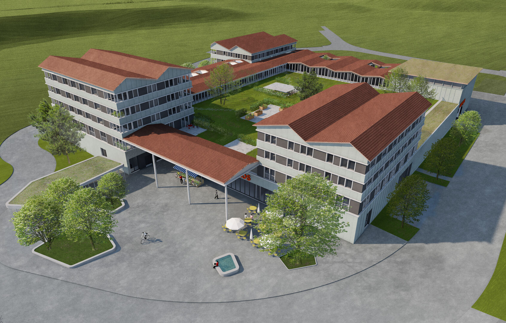 Genutzt wird der Kubus (Neubau) im Untergeschoss als Gemeinschaftsraum für den Kindergarten. Gemeinschaftliche Aktivitäten des Kindergartens werden aktuell im Gang- bzw. Garderobenbereich abgehalten. Tische, Stühle und Kinderspielgeräte verbarrikadieren die erforderlichen brandschutztechnischen Fluchtwege, welche damit nicht gewährleistet sind und somit nicht den gesetzlichen Anforderungen entsprechen. Mit dem geplanten neuen Personenaufzug kann eine vertikale Verbindung geschaffen werden, die alle Geschosse erschliesst. Damit können Personen mit Behinderungen, Hauswartgeräte, Material und Möbel bequem in die einzelnen Stockwerke transportiert werden. Der heutige Innenhof wird wenig intensiv genutzt und die bestehende Bepflanzung muss aufwändig unterhalten werden. Die Bibliothek findet hier ihren neuen Ort und kann damit einem Klassenzimmer, in dem die Bibliothek heute integriert ist, seine ursprüngliche Nutzung wieder zurückgeben. Im Obergeschoss befindet sich das Lehrerzimmer sowie der Vorbereitungsraum. Dieser befindet sich derzeit im Untergeschoss. Damit können zeitaufwändige und umständliche Wege eliminiert werden.