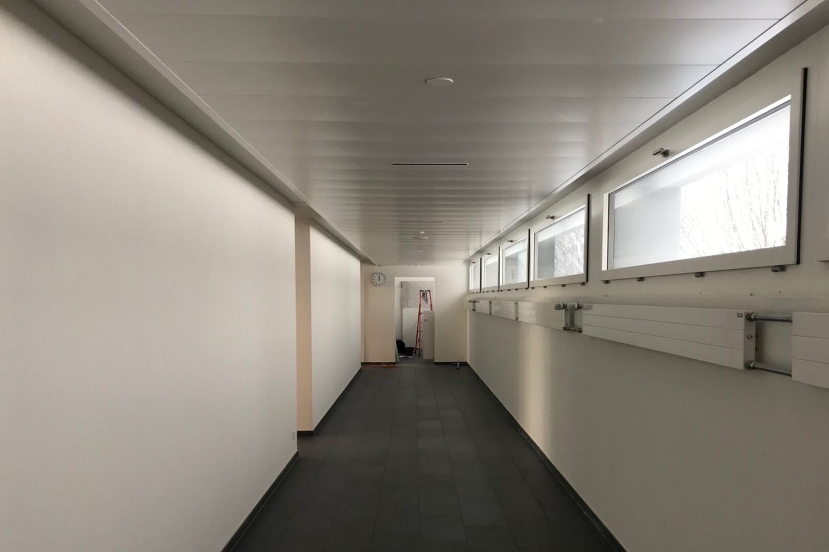 Die Schulkommission der Gemeinde Salmsach beauftragte die Wick Projektentwicklung AG damit, zu analysieren, welche Massnahmen für eine Gesamterneuerung zweckmässig und wirtschaftlich sind und wie sie terminiert und etappiert werden können. Unter Berücksichtigung des laufenden Schulbetriebs soll das Objekt erneuert werden. Unter diesem Aspekt war gegeben, dass die Erneuerung in Etappen erfolgen musste, verteilt auf 2 Jahre. Etappe 0: Erweiterung Innenhof (Neubau Kubus) Etappe 1: Erneuerung Hauptbau Etappe 2: Erneuerung Erweiterungsbau Etappe 3: Einfamilienhaus Hauswart Kubus